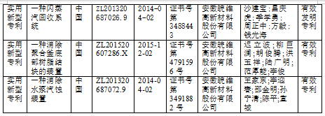 2016年6月28日,安徽省经信委组织专家对 “海岛碱溶聚酯切片”新产品进行鉴定。鉴定意见:产品通过配方设计、改性单体引入、催化体系选择和工艺化,经直接酯化法生产出海岛碱溶聚酯切片。产品具有碱性易溶解、与各种纤维相容性好、低自粘性等特性,可广泛用于仿真丝织物、人造革等域,相关技术获得发明专利1件,综合技术水平国内先(附件2.2.7)。